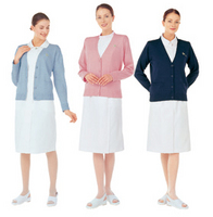 毛玉になりにくいアクリル混ウール使用。可憐なスズランとロゴマークを胸元にあしらって、ほんのりフェミニンに。シンプルなVネックで飽きがこず、ナースウェアのデザインを選びません。