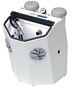 内蔵のバキューム機構により使用済の約50%のサンドを循環させ再利用します。オプションのベーシックモービルフットを使用すると、通常のマイクロブラスティングも行うことができます。