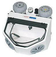 レンフェルト社のベーシックなサンドブラスター。必要な基本機能を装備し、二つの独立したタンク、ノズルとホースを備えております。フットスイッチはどこからでも操作しやすい円形です。